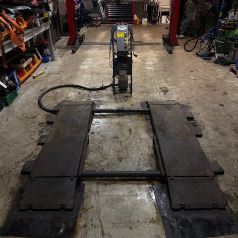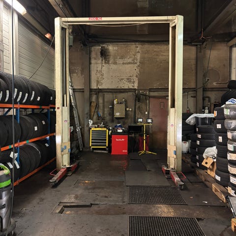 Bilheisen har to søyler med løftearmer som justeres under bilens løftepunkter. På søylen er det merket med maks belastning og sikkerhetsinstruksjoner for korrekt bruk. Egner seg for arbeid som service, reparasjoner og dekkskift der det er behov for fri tilgang under kjøretøyet.