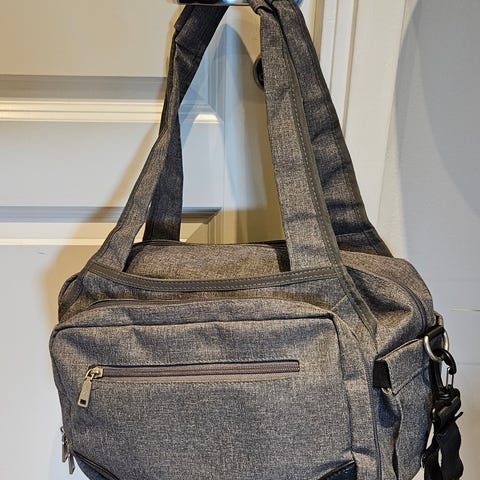 Tinkafu stelleveske i svart farge. Vesken har ryggsekkstropper og flere rom med glidelås både utvendig og innvendig for organisering av babyutstyr. Innvendig er det elastiske lommer og nettinglommer som gir god oversikt over innholdet. Kan brukes sammen med barnevogn eller bæres som ryggsekk.