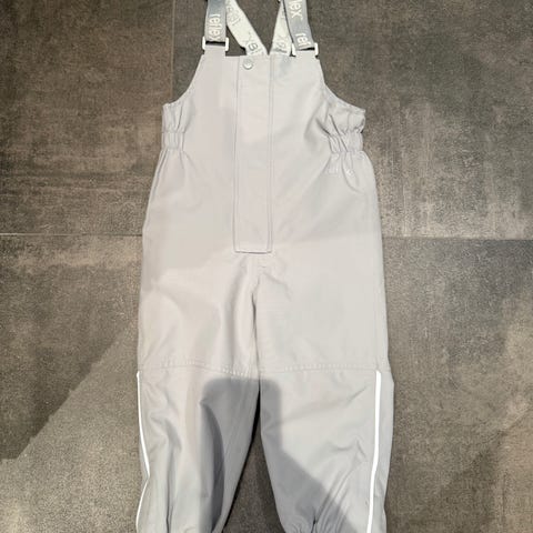Reflex selebukse for barn i størrelse 86. Buksen er grå og laget i polyester. Modellen har regulerbare seler med Reflex-logo, glidelås og borrelås foran, samt strikk nederst i beina for bedre passform. Mangler fotstropper. Unisex-modell som passer både gutter og jenter. Detaljer i refleks løsnet og ble fjernet fra leggene.