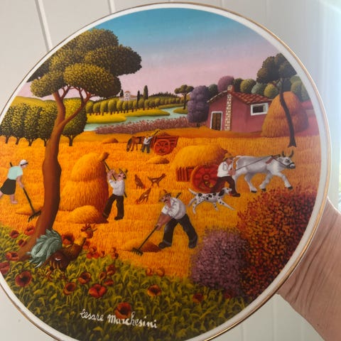 Flott kjeleunderlag med ramme i tre og keramisk flis med motiv av fruktkurv. Har vært brukt som pynt hos mine besteforeldre, så dette har både sjarm og historie. Kan brukes som kjeleunderlag, eller som dekor på vegg eller kjøkkenbenk.