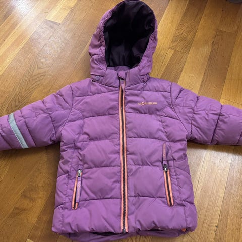Bergans dunjakke for barn i størrelse 116. Jakken er rosa og fylt med dun. Den har hette, glidelås i front og glidelåslommer i sidene. Passer til jente og egner seg som varm ytterjakke i kaldere vær.