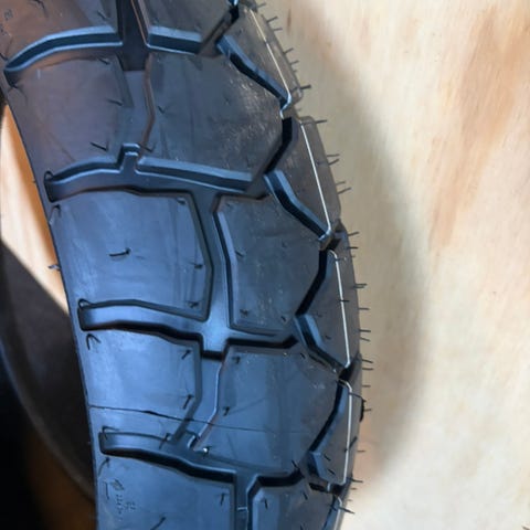 Piggdekk til moped, aldri brukt, men stått lagret i garasje et par sesonger.