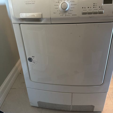 Trommelen er fra 2013, og er godt brukt. Trommelen har begynt å lage noen høye ulyder, og vi mistenker at det kan være en reim som er defekt. Grunnet alder, og behov for større trommel, så gir vi bort denne. Den er kanskje grei for noen som vil forsøke å fikse den selv. Dersom den ikke hentes innen 1 uke, så kjøres den til avfall for hvitevarer. Den må hentes.