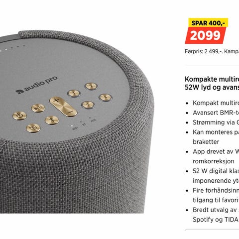 Audio Pro multiroms høyttaler selges! Tekst fra power.no: