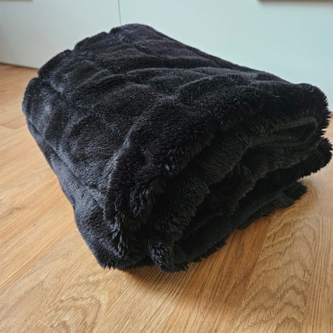Svart tekstil teppe