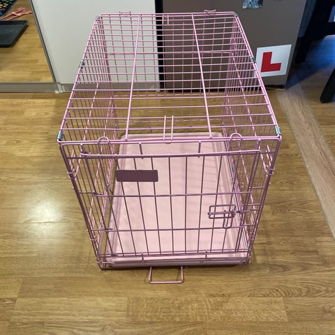 Hundebur i metall i svart farge. Buret har gitterkonstruksjon med god lufting og oversikt for hunden. Egnet for bruk hjemme, i bil eller som midlertidig oppholdssted for hund. Bunnen er flat og tilpasset for plassering av teppe eller pute for økt komfort. Passer til mindre til mellomstore hunder, avhengig av mål på buret.
