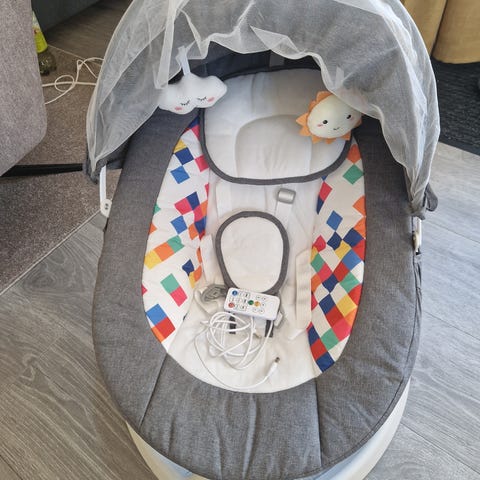 Dattera vår er ikke noe fan av denne så den må selges. Hun har vært i stolen i total 5min fordrlt på 2 dager så den er som ny.