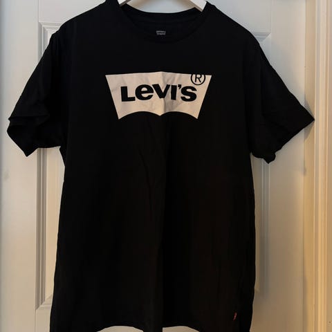 Levi's langermet T-skjorte for herre i størrelse XL. T-skjorten er hvit og laget av bomull. Den har rund hals og et trykket Levi's-logo på brystet. Passer til hverdagsbruk alene eller under andre plagg.