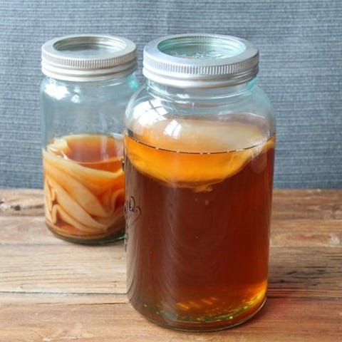 Kombucha med scoby . Inneholder fermentert te med scoby-kultur.