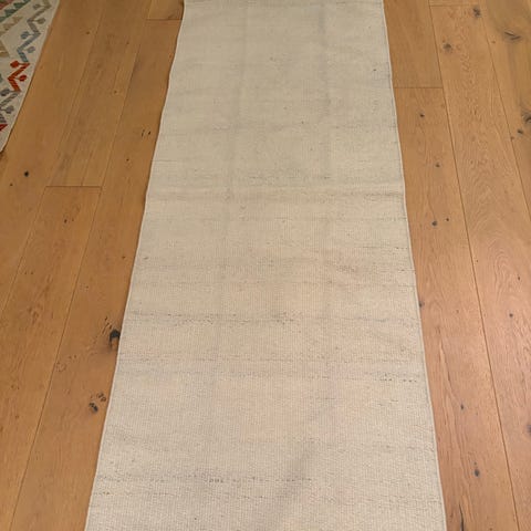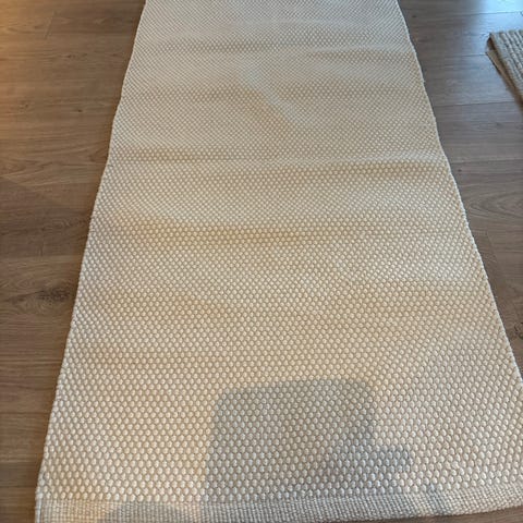 IKEA Tidtabell løper i størrelse 80x200 cm. Teppet er i en lys, beige farge og egner seg som løper i gang, stue eller andre oppholdsrom.