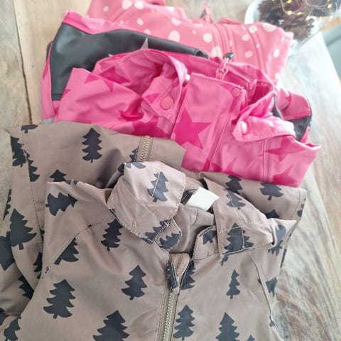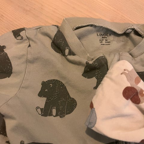 Lindex parkdress for barn i størrelse 74. Dressen er brun med trykk av trær og er laget i polyester. Modellen er unisex og har hette, glidelås foran og strikk nederst på bena med fotstrikk.