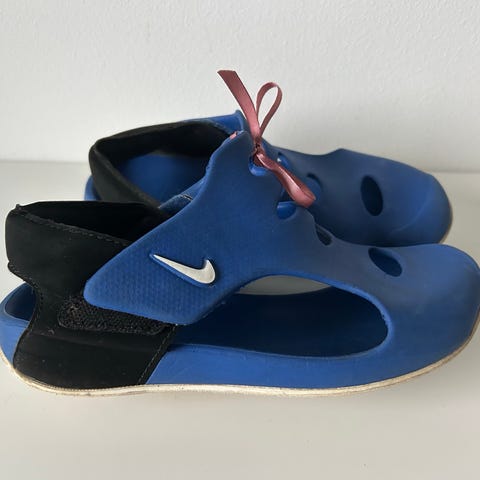 Nike sandaler for barn i størrelse 33. Modellen er unisex og kommer i svart farge. Skoene har åpen og luftig utforming med hull i overdelen og utskjæringer i sidene. De har justerbar lukking foran og hemper bak for enklere av- og påtaking. Passer til hverdagsbruk og aktiviteter der det er behov for lette og luftige sko.