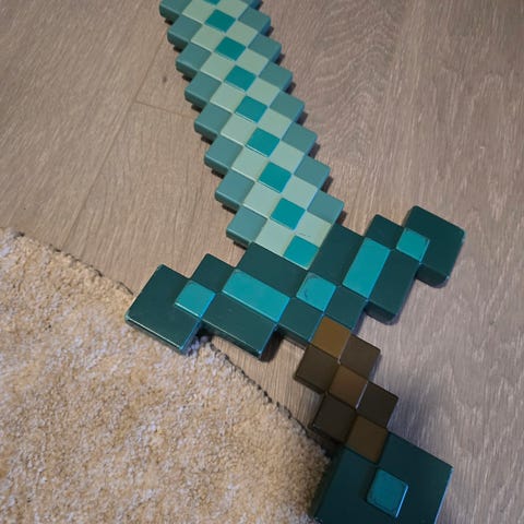 Minecraft lekesverd og hakke i plast, flerfarget. Selges samlet.