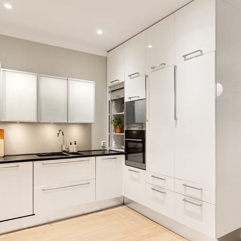 Kjøkkenet ser helt fint ut og har lite synlige bruksmerker.