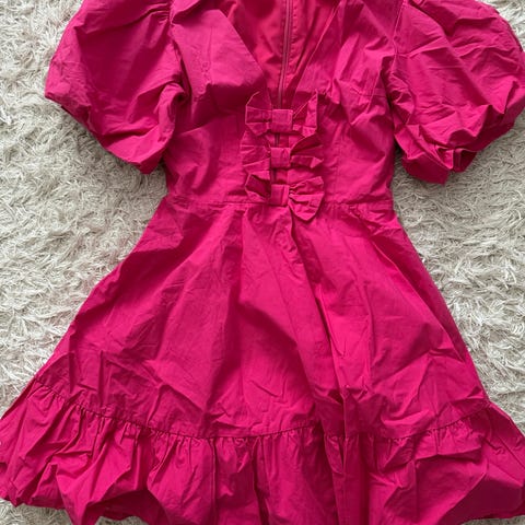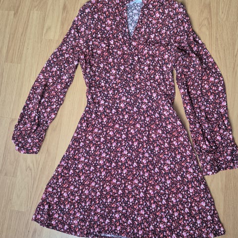 & Other Stories hverdagskjole i lilla farge for dame i størrelse 42. Kjolen er laget i polyester og har en strukturert overflate. Modellen har korte, voluminøse ermer og glidelås i ryggen. Passer som hverdagskjole eller til enkle anledninger. Materialet er lett og holder fasongen godt. Vaskes ifølge vaskeanvisning på plagget.