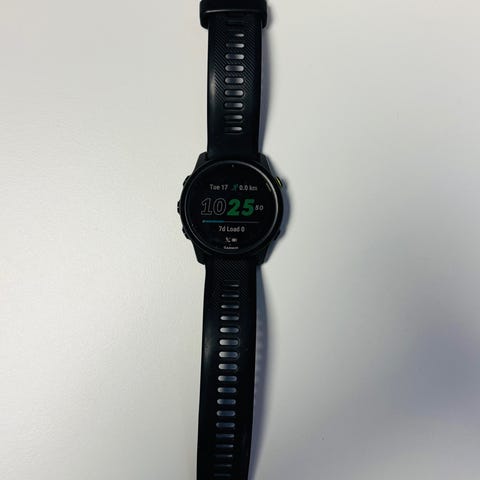 Garmin Forerunner 745 pulsklokke i svart med silikonreim. Hatt i ca 2 år, selges da jeg har fått ny. Fungerer helt som den skal, og fortsatt veldig god batteritid. Lader medfølger.