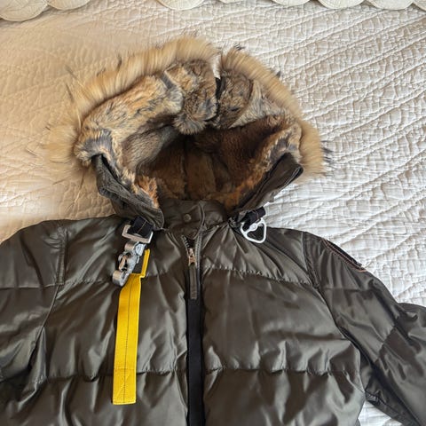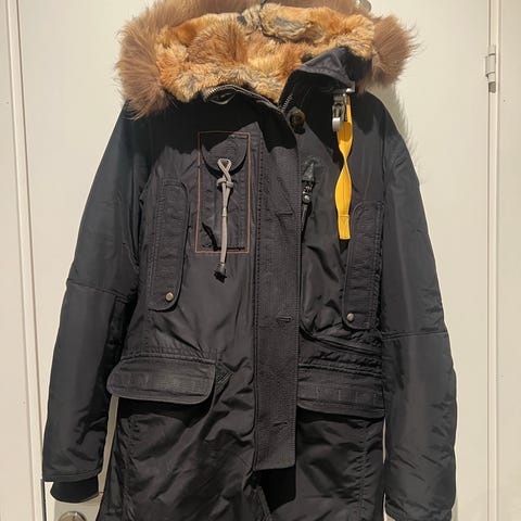 Parajumpers Masterpiece Series dunjakke for dame i størrelse S. Jakken er svart og laget i polyester. Den har hette med avtagbar pelskant, flere utvendige og innvendige lommer samt glidelås og knappelukking i front. Klassisk Parajumpers-patch på ermet og karakteristiske detaljer ved kragen. Egnet som varm ytterjakke i kaldt vær.