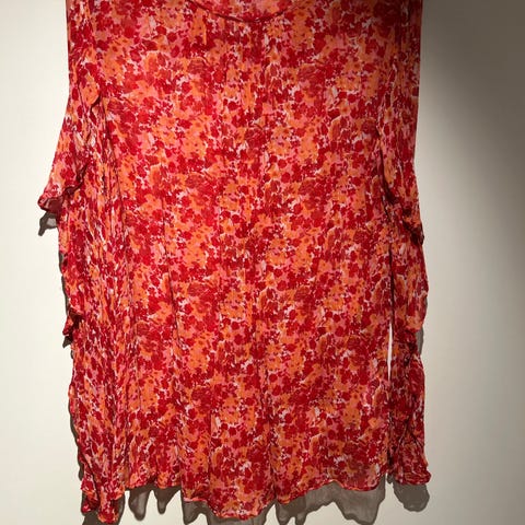 byTiMo bluse i størrelse M for dame. Blusen er rosa med blomsterprint og er laget av 100 % viskose. Lett og tynn kvalitet som egner seg godt til hverdagsbruk eller til penere anledninger, og kan brukes både alene eller under jakke eller cardigan.