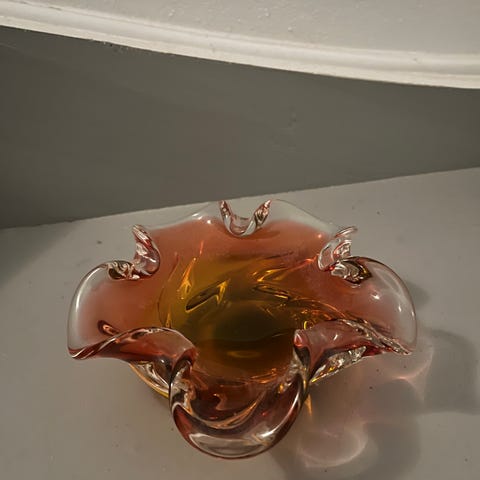 klart glass med rosa og ravfargede toner.