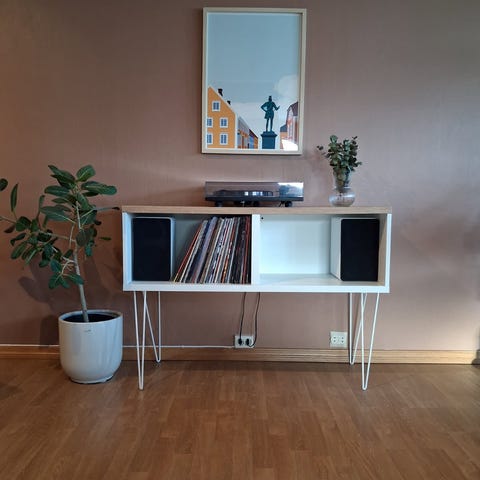 Selger en skjenk/tvbenk fra IKEA som vi har fikset opp litt. Dog trenger den nok litt kjærlighet etter å ha vært med på et flyttelass, og selges derfor billig. Se skader i maling på bildene.