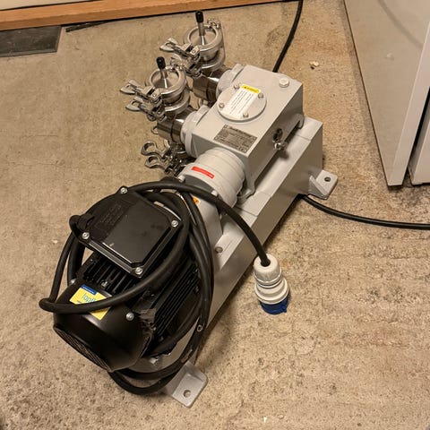 Elektrisk motor 120W med utveksling, kondensatorer, ulike brytere. Det kommer fra en stiftemaskin og er helt fungerende.