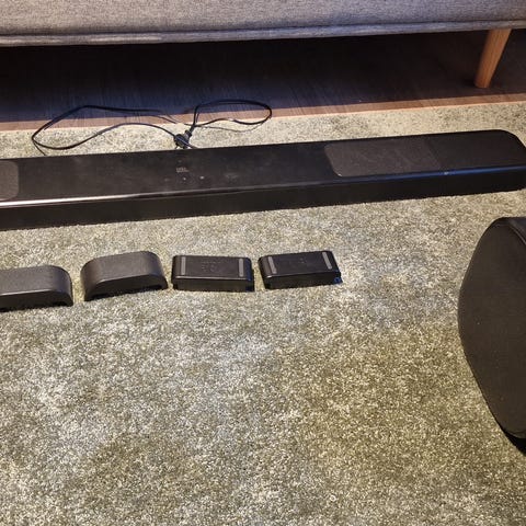 Selger min lydplanke fra Samsung. Vinner alt av tester. Dolby Atmos igjennom denne lydplanken er noe som bør oppleves. Stram og kraftfull bass. I mitt rom var det output helt ned til 25hz. Dette med hjørne plassering av sub. Eller er tale og effekter svært bra. Er også auto kalibrering som fungerer svært bra. Fjernkontroll følger med men lydplanken vil koble seg til den fjernkontrollen du bruker mest. Mulig jeg kan finne original emballasje men sender ikke. For stor og tung. Kan møtes på halvveien innenfor rimelighetens grenser. Henting vil bli prioritert.