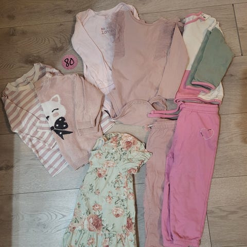 Jenteklær i str 74-80. Noen av klærne er i str 86.