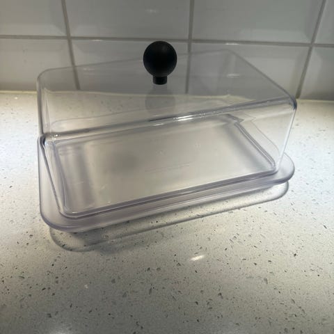 Bodum osteklokke i hvitt porselen. Består av tallerken og kuppel med rund hank på toppen. Egnet til servering og oppbevaring av ost eller andre mindre matvarer på bordet eller på kjøkkenbenken. Nøytral, hvit farge som passer inn i de fleste serviser og kjøkkenstiler. H 20 cm, B 20,5 cm. Meget dekorativ og elegant på bordet, fin stand.