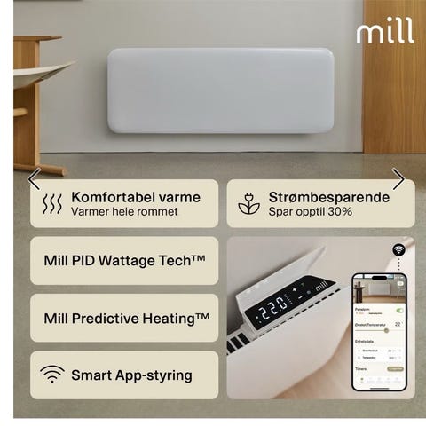 Selger en Mill panelovn 2000W. Den har vært montern en kort stund. Derfor pent og lite brukt.