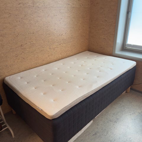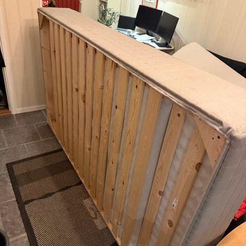 IKEA, SKÅRER seng med NISSEHOLM overmadrass