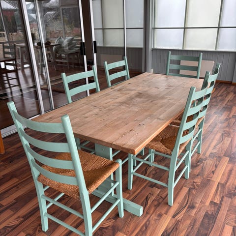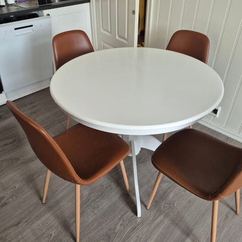 Pent brukt bord og 4 stoler.