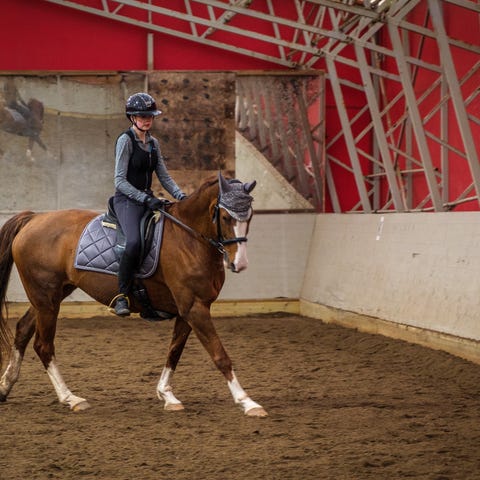 Oldenburger hoppe på 9år, 163cm høy. Primært kjøpt for dressur, men trives ikke med reise og henger, så brukes som luksus-hobby hest.