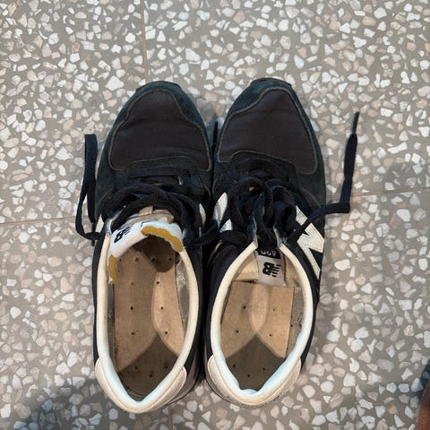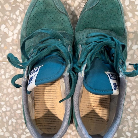 New Balance sneakers/joggesko i størrelse 36, 5. Modellen har snøring foran og overdel i en kombinasjon av skinn og syntetiske materialer i grå og beige toner. Skoene har polstret pløse og hælkappe for økt komfort, samt yttersåle i gummi som gir godt grep. Egnet som fritids- og hverdagssko.