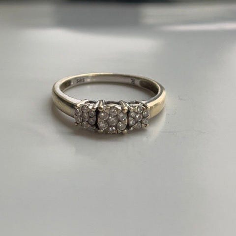 Pen gifte ring av gull med diamanter selges.