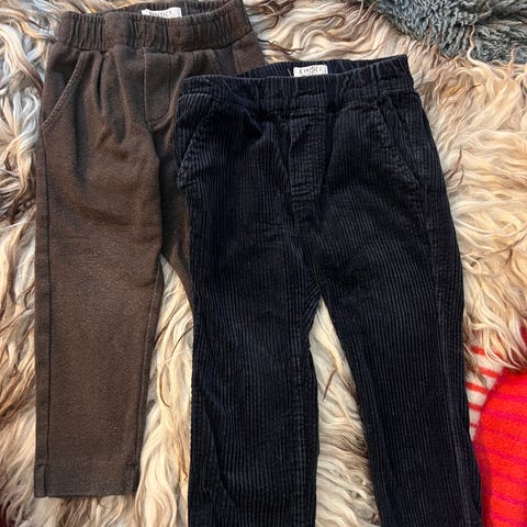 To penbukser fra Zara i størrelse 122 (7 år). Materialet er polyester, viskose og elastan. Pent brukt. Selges samlet. Se gjerne mine andre annonser.