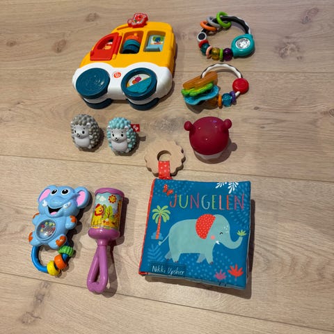 Det er også to pappbøker for små barn, blant annet en bok med motiver fra Disney Biler og en kontrastbok med enkle figurer i sterke farger og svart-hvitt.