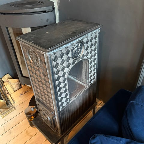 Selger en solid og pen klebersteinsovn med fine messingdetaljer. Modellen heter Octo 50. Ovnen gir behagelig og jevn varme over lang tid.