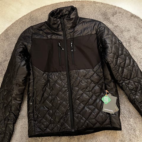 Hybridjakke/mellomlagsjakke. Isolerte paneler i kombinasjon med strech fleece.