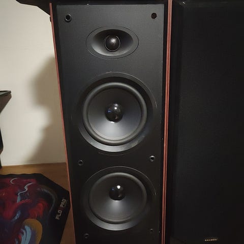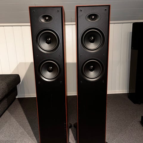 2 front høytalere på 160 W, 2 bak høytalere på 40 W og 1 senter høytaler på 80 W. Alt av merket JML