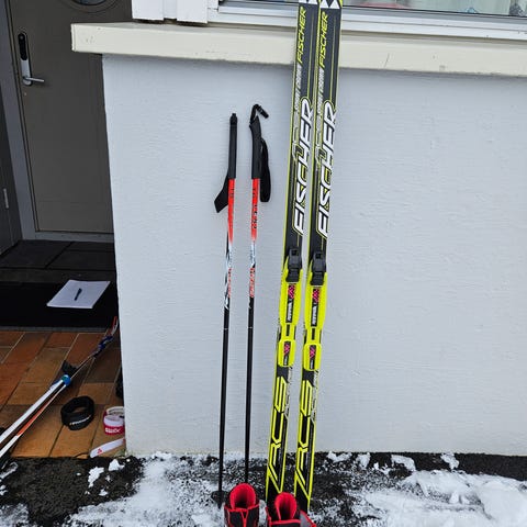 Langrennspakke – Rossignol ski (117 cm), Fischer skistøvler (str. 34) og staver