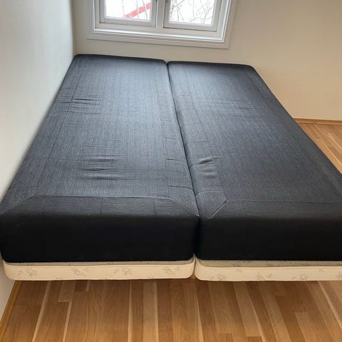 Brukt 160-seng gis bort mot henting. Sengene kan tas fra hverandre i 2 deler under frakt. Følger med overmadrass. Hentes i 3. etg med god plass i trappeoppgangen.