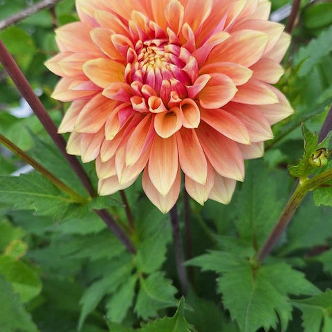 ‘Sebastian’ er en dekorativ dahlia med jevn og fin vekst og blomster av god størrelse. Den passer godt både i bed og i krukker, og gir et dekorativt innslag i hagen gjennom sesongen.
