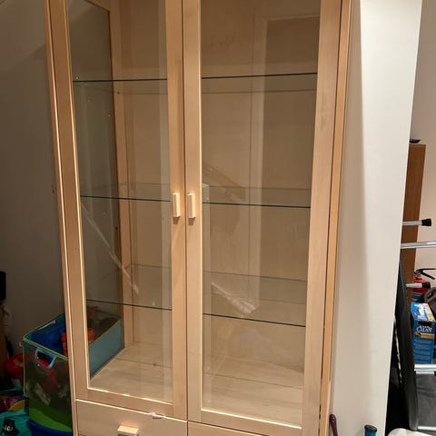 Selger flott vitrineskap pga. flytting og har ikke plass på det nye stedet. Sjeldent åpnet pga. det var brukt for pyntegjenstander.
