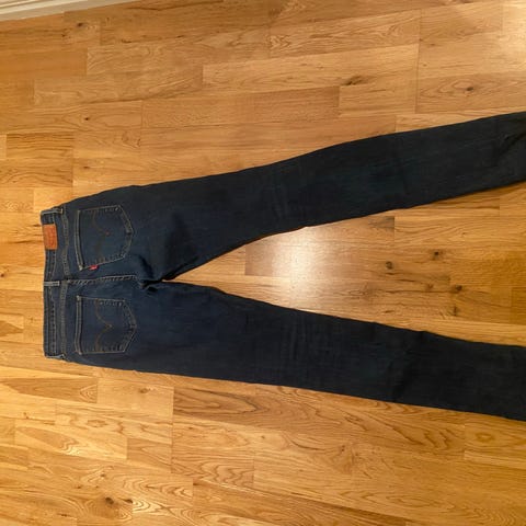 Levi's jeans slight curve skinny jeans for dame i med livvidde W28 og L33. Buksen er i blå denim laget av bomull. Klassisk femlommersmodell med glidelåsgylf og knapp i front. Passer til hverdagsbruk og kan kombineres med ulike overdeler for et enkelt og funksjonelt antrekk. Pent brukt.