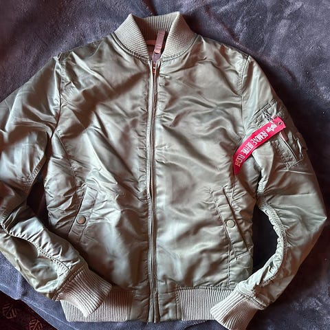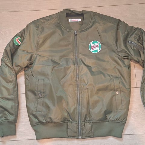 Ny og ubrukt Castrol bomberjakke, str. M - unisex. Normal/raus i størrelsen. Laget av 100% polyester, men behagelig og luftig å ha på seg.