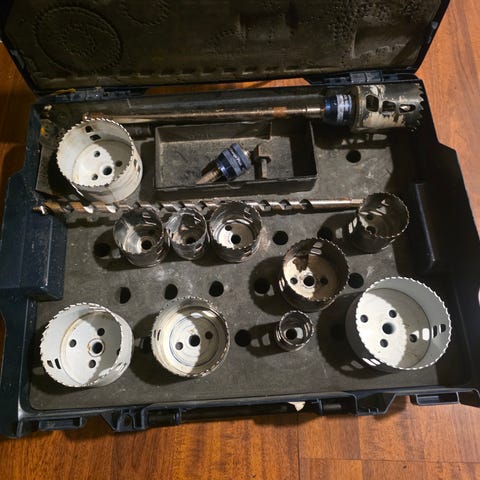 Et sett med diamantbor beregnet for å lage presise hull i harde materialer som fliser, stein og granittkeramikk. Bodderene alene har en verdi på over 2500 kr.