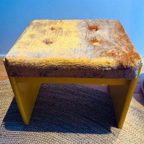 Selger en retro kul stol i brunt imitert skinn.