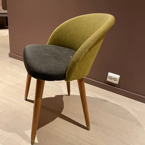 Pent holdt stol i brunt imitert skinn fra 60-tallet selges!