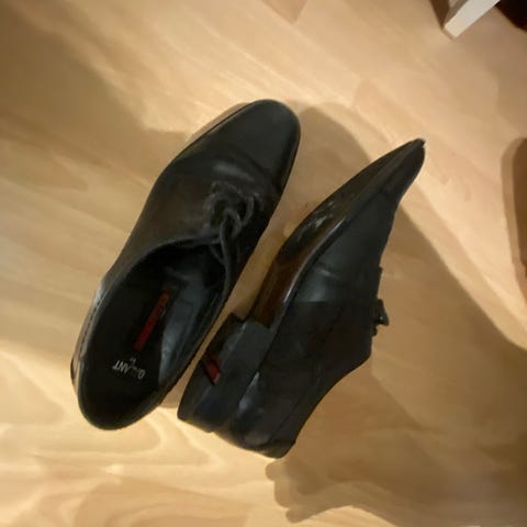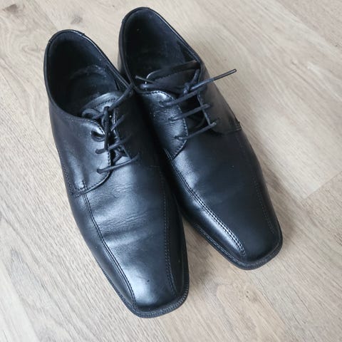 Meget pent brukte, kanskje et par ganger. Gode og solide sko. Tror det er skinn