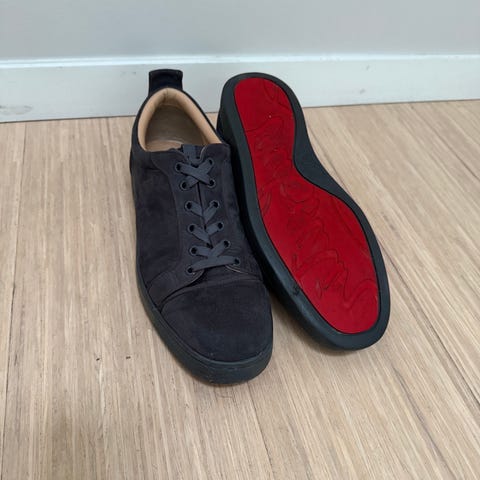 Louboutin sko selges grunnet lite bruk, de er litt brukte og mangler en pigg og har litt slitasje på noen av piggene, ta kontakt om spørsmål. Er litt mørke i fargen siden jeg har vasket skoene.